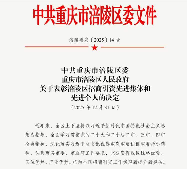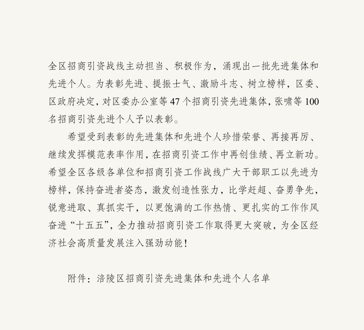 热烈祝贺涪发集团产业发展部叶馨同志荣获区委区政府“招商引资先进个人”荣誉称号。